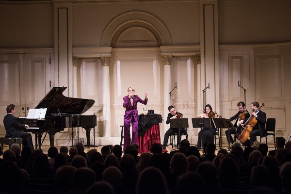 Adrienne Haan performing "Tehorah" at Carnegie Hall in New York;