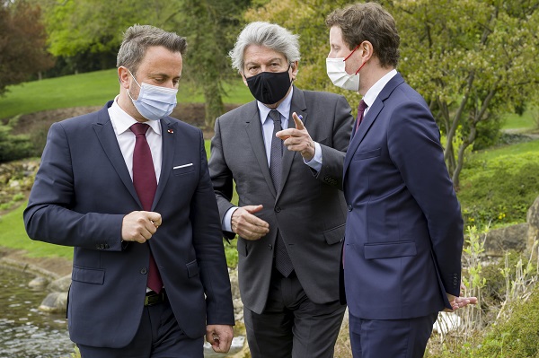 On Monday 3 May 2021, Luxembourg's Prime Minister Xavier Bettel received the European Commissioner for Internal Market, Thierry Breton, and the French Secretary of State for European Affairs, Clément Beaune, for working meetings at Senningen Castle.