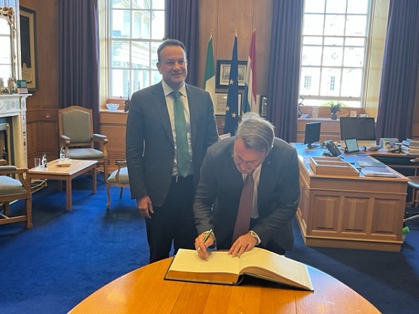 An Taoiseach Leo Varadkar stated that Prime Minister Bettel has been a very good friend of the country. He said the two countries have excellent bilateral relations and referenced the opening of the Luxembourg embassy in Dublin. He mentioned that meeting today enabled them to discuss major issues in more detail than when meeting at EU meetings. He referenced Ukraine and the recent humanitarian response to the catastrophic breaking of the dam. He said that he had briefed Prime Minister Bettel about Ireland's security policy and mentioned that Ireland is neutral. He addressed the EU's single market and its 30th anniversary. He especially thanked Luxembourg for its solidarity throughout Brexit and added that while Ireland is not applying for NATO membership, it will be increasing defence spending.