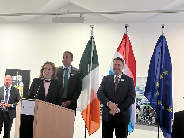 An Taoiseach Leo Varadkar then thanked Ambassador Ensch for her invitation and also welcomed representatives of the defence forces who served in Mali alongside Luxembourg troops. He said that Ireland celebrates 50 years of membership of the EU this year, with Luxembourg being a founding member. He said Ireland and Luxembourg are working together on many issues. He mentioned that St Willibrord, born in England but who trained in Co. Carlow, is buried in Echternach. Diplomatic relations between the two countries started in 1961.