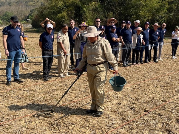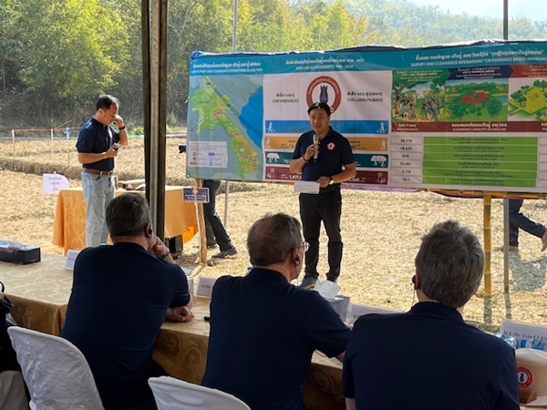 A 40-minute drive from the hotel in Luang Prabang, the vast majority along unpaved roads in hilly terrain, the demining site was located at the Pick Yay village, in the Luang Prabang province. Accompanied by Laos' Minister of Labour and Social Welfare, Mrs Baykham Khattiya, and the Deputy National Programme Director of UXO LAO, Saomany Manivong, they received a briefing on UXO (unexploded ordnance) action in Laos in general, as well as another focussing on the UXO clearance operation in Pick Yay village.