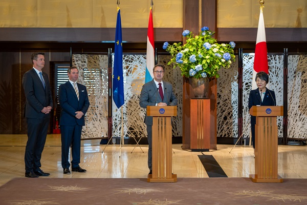 (L-R) Lex Delles, Luxembourg’s Minister of Economy, SMEs, Energy and Tourism; Guillaume of Luxembourg, the Hereditary Grand Duke; Xavier Bettel, Minister for Foreign Affairs and Foreign Trade; Yoko Kamikawa, Japan’s Minister of Foreign Affairs;