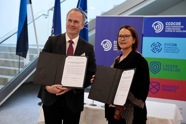 (L-R) Dr Mart Noorma, Director of the CCDCOE; Yuriko Backes, Luxembourg's Minister of Defence;