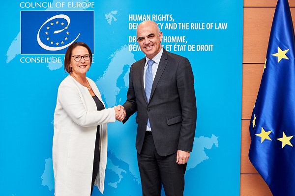 (L-R) Yuriko Backes, Luxembourg's Minister of Gender Equality and Diversity; Alain Berset, Secretary General of the Council of Europe;