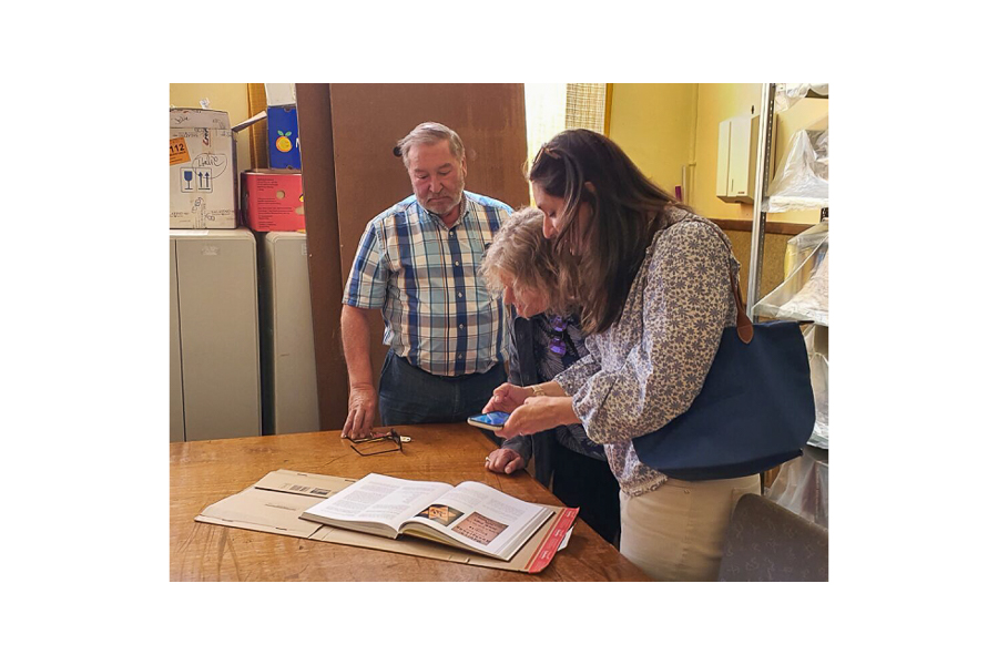On her 2022 trip to Luxembourg to apply for citizenship, Nancy met Lilliane and Nico and went to the bakery building in Ettelbruck and saw the window of her aunt’s workshop. Nico showed her a photo of a large wooden chest that had belonged to Anna, who had written her name on the lid thinking she would be returning to resume her life in Ettelbruck.