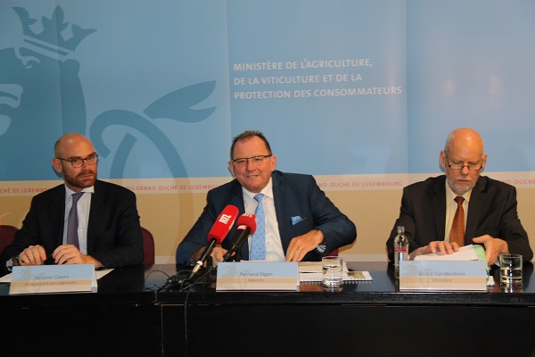 Photo by MAVPC (L-R): Antoine Clasen (Groupement des négociants); Minister Fernand Etgen; André Vandendries (MAVPC)