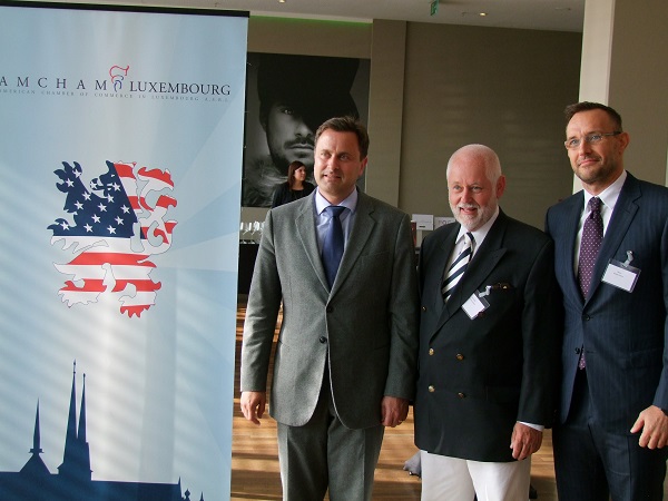 Photos by Geoff Thompson (above, L-R): PM Xavier Bettel; Paul Schonenberg, AMCHAM; Gyorgy Gattyan of Docler Holding