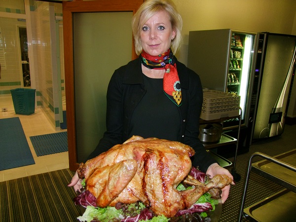 The two event sponsors, Openfield and POST Luxembourg, both made short presentations, and a tombola was held, before the turkey was paraded on a platter to signify the traditional thanksgiving meal of pumpkin soup and turkey was about to start.