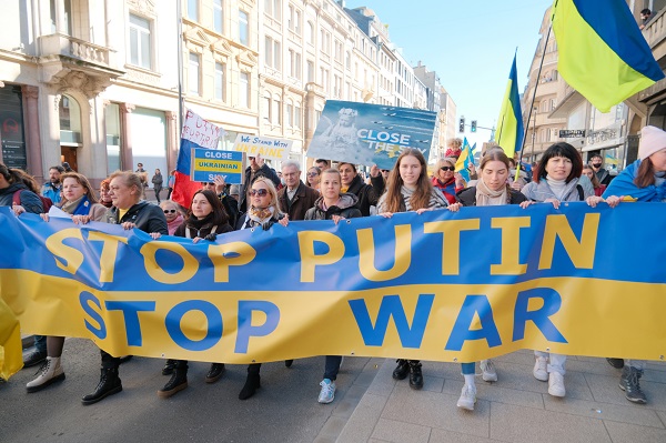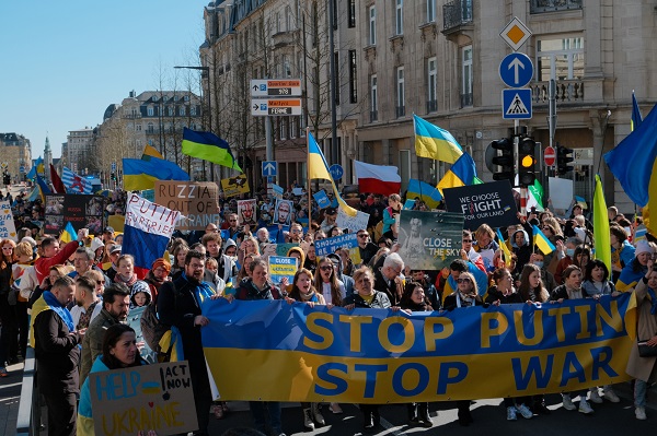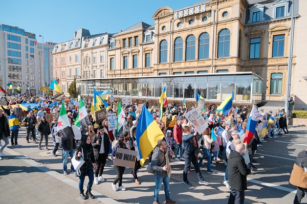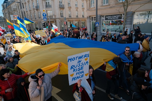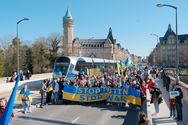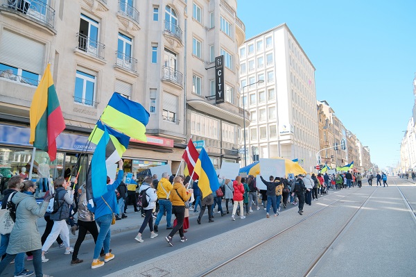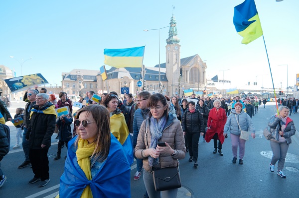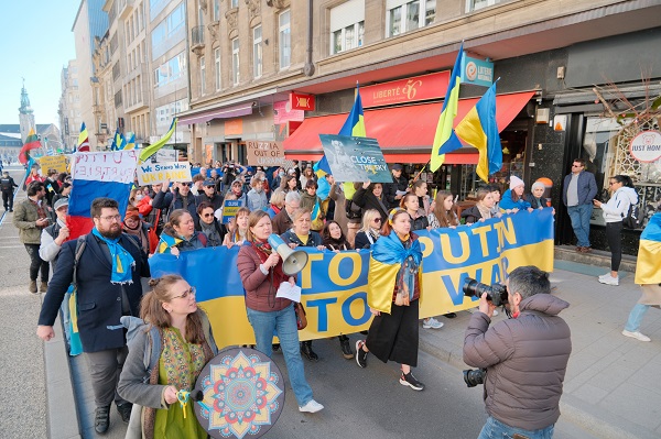 The protest, organised by local non-profit LUkraine asbl, saw hundreds of people march from Place de la Gare to Place d'Armes via Avenue de la Liberte, Place de la Metz, Place de Bruxelles, Boulevard Roosevelt and Rue Philippe in Luxembourg-Ville.