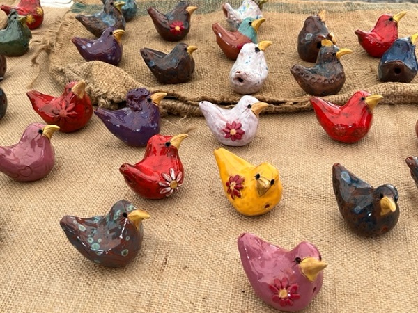 The main attraction was the stands selling "Péckvillercher", ceramic bird whistles, for which new designs are produced each year. Other ceramic designs were olso on sale, featuring different animals, etc., as well as ceramic cooking pots and serving dishes.