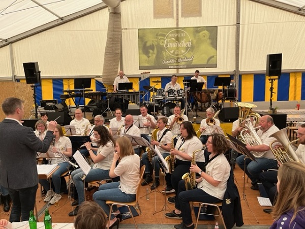 Traditional meals were served in the marquee in the centre of the town where musical entertainments was also provided by the local brass band. At both ends of the cordoned-off village, foodtrucks and friteries had set up offering burgers, sausages (grillwursts, etc.) and chips, with drinks also available, many people enjoying crémant or beer in the outdoors from mid-morning.
