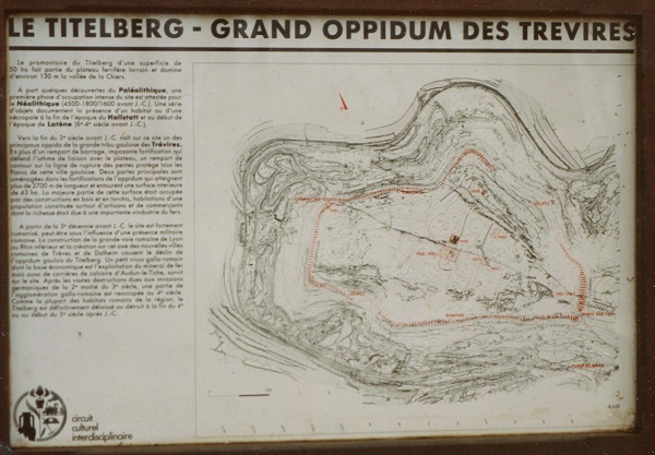 It lies above Pétange and is a very large Gallo-Roman fortified camp, or in this case, it is big enough to qualify as a town. It has a long history even before the arrival of the Romans - dating to Celtic times. David noted that space does not permit to give readers the history or the modifications to the fortifications over the years. He suggests that before going there, one should visit the National Museum at the Fish Market (Nationalmusée um Fëschmaart). Whilst this is, according to David, a spectacular visit in its own right, he noted that down in the basement, one will find information panels showing how the fortifications (walls) changed over time as the builders became more sophisticated.