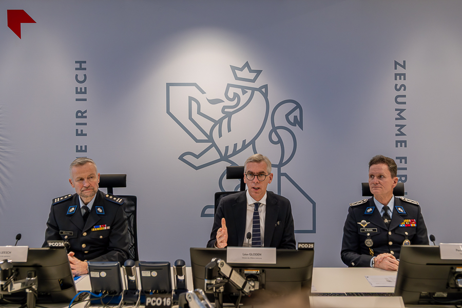 On Monday 15 December 2025, Luxembourg's Minister of Home Affairs, Léon Gloden, took part in a press conference at the Grand-Duc Henri Police Complex (CPGDH) in Findel to inaugurate the new National Intervention Centre 113 (CIN), alongside Director General of the Police Pascal Peters and Police Director of Operations Bob Leesch.