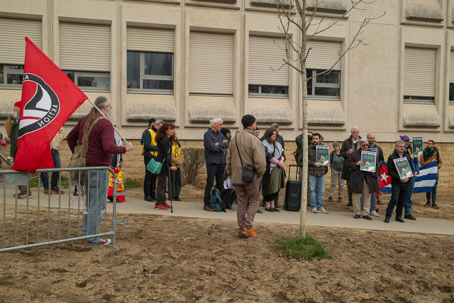 The organisers said they "condemn this new war, which gives cause for the worst fears, hinders any peaceful solutions and will only provoke further conflict", also arguing that "the democratisation of Iran must come from the grassroots and find its own path".