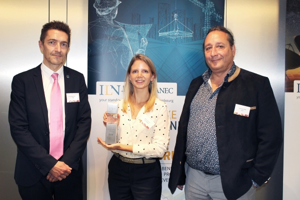 Following additional presentations, the conference ended with the award ceremony for the new “ILNAS Standardisation and Innovation Award”, the concept of which was explained beforehand by Anika Ley, project manager at OLN. The first 2022 edition of the trophy rewarded the "High strength steels for the design of steel structures" project by ArcelorMittal (Steligence® and Global R&D) which offers innovative construction solutions using high-strength steel for the design of steel structures. The team in charge of the project has also largely contributed to the revision of Eurocode 3 to allow the use of these innovative products in the future. Jean-Marie Reiff, Director of ILNAS and Dr Jean-Philippe Humbert presented the trophy to Dr Marion Charlier who represented ArcelorMittal at this conference.