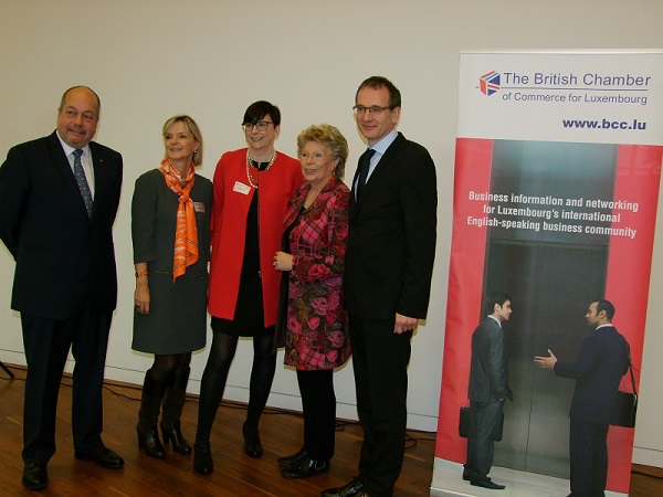 (L-R): Patrick Birden, BCC; Sophie Kerschen, BCC; Joanna Denton, BCC Chairman; Viviane Reding, MEP, Ambassador John Marshall;