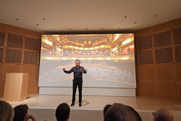 There was a lot of audience engagement and brainstorming, as the speaker guided attendees through his words but also gestures, complemented by sound and video clips.