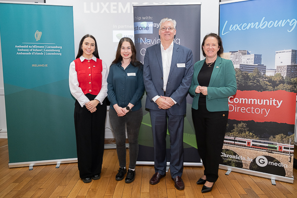 (L-R) Caoimhe McCarthy, Deputy Head of Mission at Embassy of Ireland; Jazmin Campbell, Chronicle.lu; Darren Gorman, Waystone; Jean McDonald, Irish Ambassador to Luxembourg;