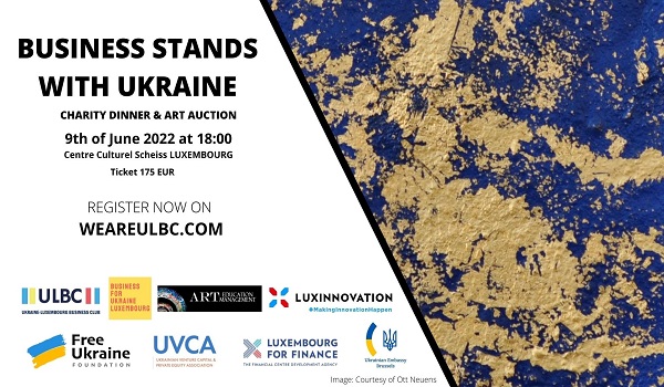 Ukraine-Luxembourg Business Club asbl (ULBC) has announced that it is organising, together with its partners, a charity dinner with a silent art auction at "Schéiss" cultural centre in Luxembourg-Belair (142 Val Ste Croix, 1370) on Thursday 9 June 2022 from 18:00.