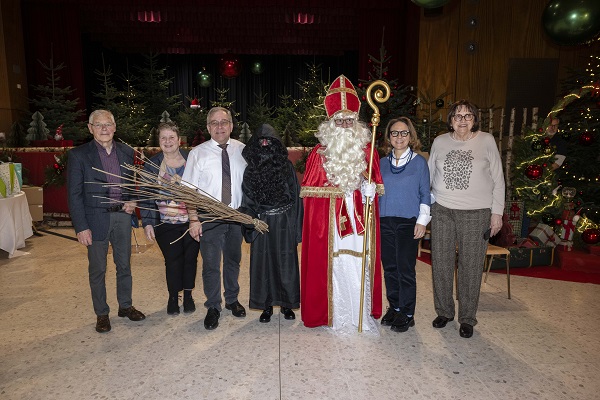 The Kleeschen, accompanied by "Père Fouettard" or the "Houseker", visited the children of beneficiaries of Cent Buttek Beggen at the Centre Prince Henri in Walferdange on Saturday. He reportedly received a warm welcome from the volunteers of Cent Buttek, as well as Corinne Cahen, Luxembourg City alderwoman responsible for social affairs, and François Sauber, the mayor of Walferdange, with which the City of Luxembourg has signed an agreement concerning the Cent Buttek food bank.