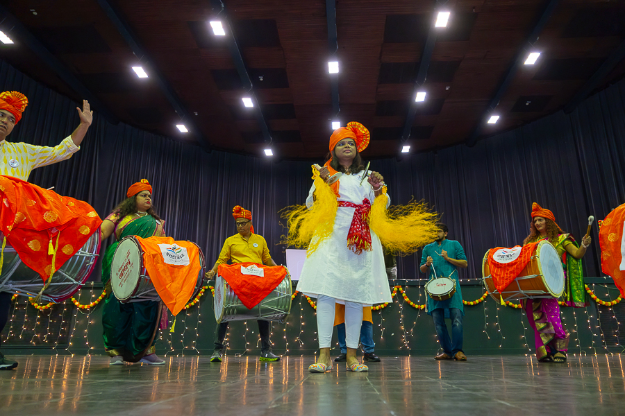 Very much a family cum community day out, the cultural programme got underway around 17:30, including a Ramayana skit performed by children, bringing to life the story of Lord Rama's victory over Ravana and the deeper moral lessons associated with the epic, as well as drumming and dance performance. An eight-strong Dhol Tasha drumming group got the cultural programme underway with a rousing performance that set the tone for the evening. Both children and adults, many taught by dance teacher Aditi Shrotry Prasad, all attired in bright and sequinned traditional costume (many of those attending were wearing saris), performed both Indian classical and contemporary dance routines.