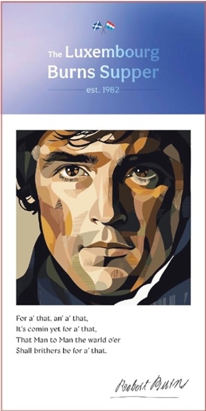 On Friday 23 January 2026, the Scottish community in Luxembourg will once again host a Burns Supper celebration, this time at the Hotel Parc Belle-Vue in Luxembourg City; the evening starts at 18:30 with dinner at 19:30.