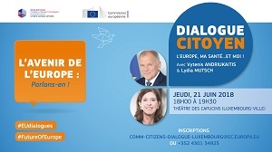 An EU Citizen's Dialogue event on the topic of health will take place on 21 June 2018 at the Théâtre des Capucins in Luxembourg City, from 18:00-19:30.