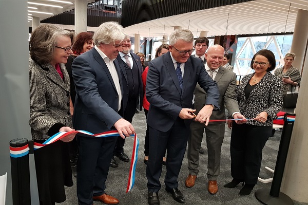 Firstly, Dr Elena Danescu, Research Scientist at the Luxembourg Centre for Contemporary and Digital History (C2DH) and Head of the EDIC University of Luxembourg, invited EU Commissioner Nicolas Schmit to officially open the new EDIC at the Luxembourg Learning Centre. The ribbon-cutting ceremony was followed by speeches by Dr Elena Danescu, Nicolas Schmit and Stéphane Pallage, Rector of the University of Luxembourg.