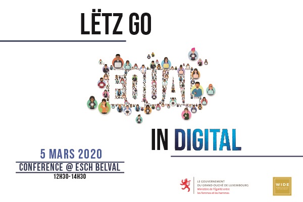 Women in Digital Empowerment (WIDE) have announced that they are organising the conference "Lëtz go equal in digital" on Thursday 5 March 2020 from 12:30 to 14:30 at Halle des Poches à Fonte in Esch-Belval.