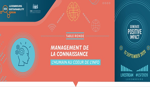 IMS (Inspiring More Sustainability) Luxembourg has announced the roundtable "Knowledge Management Roundtable: people are the information heart" as part of the upcoming edition of the Luxembourg Sustainability Forum; the roundtable will take place on Tuesday 15 September 2020 via live streaming.