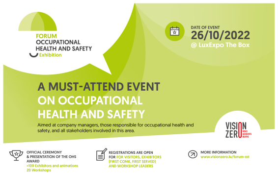 The Accident Insurance Association (AAA) has announced the fifteenth edition of the Occupational Safety and Health (sécurité-santé au travail - SST) Forum taking place on Wednesday 26 October 2022 from 08:00 to 18:00 at Luxexpo The Box.