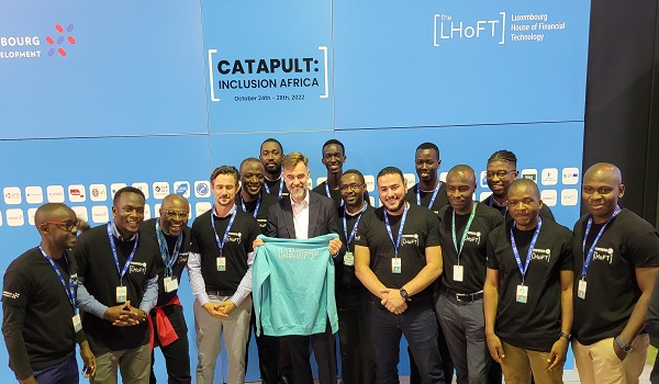 Luxembourg's Economy Minister Franz Fayot pictured with representatives of the selected startups for the latest edition of Catapult: Inclusion Africa;