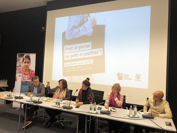 Speakers Tilly Metz, Luxembourg member of the European Parliament, Audrey Millet, researcher, lecturer and author (The Black Book of Fashion and the study published in January 2023 “How dangerous are the textiles we wear?), and Amit Narke, CEO of the Fairtrade certified company Purecotz and member of the Asia & Pacific Fairtrade producer network, presented some of the issues at hand.