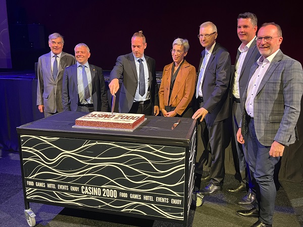 Guido Berghmans, General Director, presented a short history of Casino 2000 since its birth in 1983; this was followed by short on-stage interviews (in Luxembourgish) with Ministers Tanson and Delles, as well as Steve Reckel, Mayor of Mondorf-les-Bains, who also participated in the ceremonial cutting of the cake.