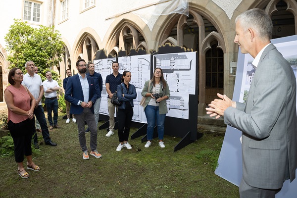 During the third stage of the hike, Minister Thill was joined by Minister Backes to visit the construction site in Vianden, where the former retirement home, adjacent to the Trinitarian church, is being converted into a modern youth hostel. This ambitious project meets a growing demand for tourist accommodation, aiming to revitalise the city centre and preserve a valuable architectural heritage.