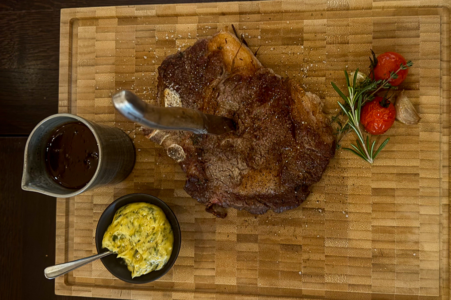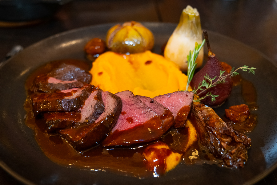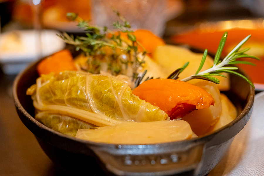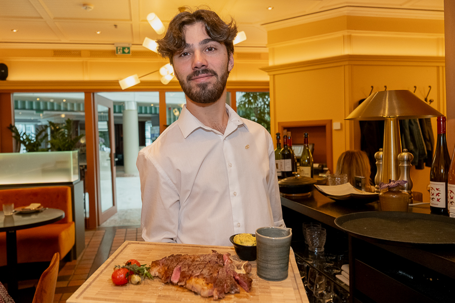 Julien Marchesini, Director of F&B at the Sofitel, explained that almost all ingredients are fresh and local from Luxembourg, apart from some fish dishes (Mediterranean sea bass and smoked herring), but including the hams and salami on the charcuterie board as well as the main dishes of beef (both rib-eye and tenderloin/filet) and Bouchée à la Reine (chicken), with local vegetables the main ingredients in the rustic terrine (starter) and vegetable fricasee (main dish), with side dishes also including the Luxembourg favourite Gromperekichelcher and small boiled potatoes. The daily "suggestions" currently include meat dishes with venison or wild boar, as it is currently the hunting season in the Grand Duchy.