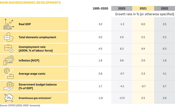 Luxembourg's statistical institute STATEC has estimated that the national economy will grow by 6% in 2021.