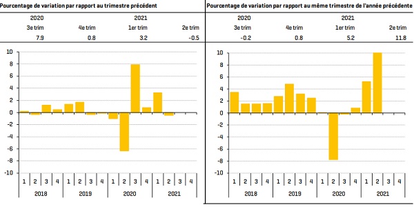 STATEC confirmed that Luxembourg's real GDP for the second quarter of 2021 was 0.5% lower than the previous quarter but 11.8% higher than the second quarter of 2020.