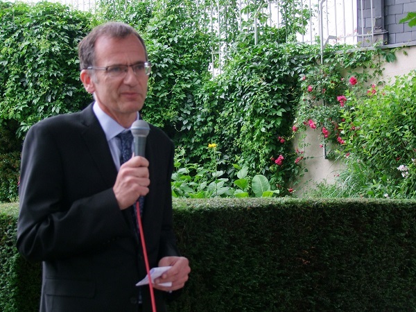 With most people glass in hand scattered around the gardens of the residence, Amb Marshall addressed those attending who had one eye skywards as the rain threatened to fall.