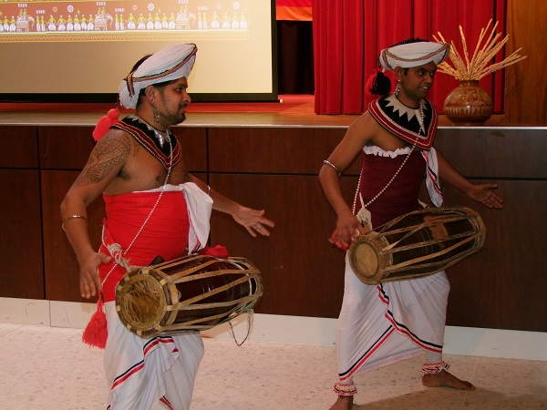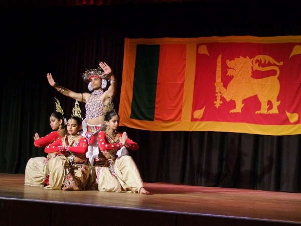 The formal part of the evening was followed by a cultural section including traditional dance performances by a Sri Lankan dance troupe based in France. A buffet dinner of traditional Sri Lankan dishes followed, with further dance performances and tourism videos being projected onto a large screen on the stage.