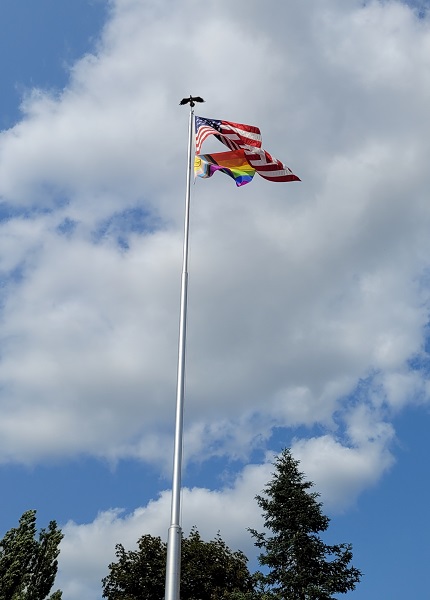 The flag raising was followed by a reception, featuring drinks and rainbow cupcakes.