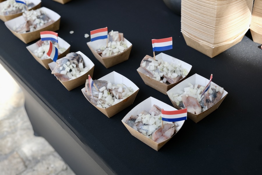 Ambassador Lobbezoo thanked those involved in preparing the King’s Day celebrations and invited guests to enjoy the food and refreshments chosen for the occasion, which included fresh fruit juices from the Zeeland province of the Netherlands, “haringhappen” (raw herring with chopped pieces of raw onion) from the Scheveningen district of The Hague and the popular Dutch snack “bitterballen” (breaded meatballs).