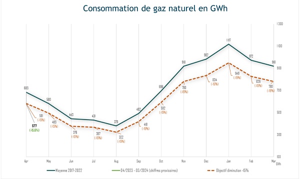 On Thursday 4 May 2023, Luxembourg's Ministry of Energy and Spatial Planning published the results of efforts to reduce natural gas consumption in the Grand Duchy.