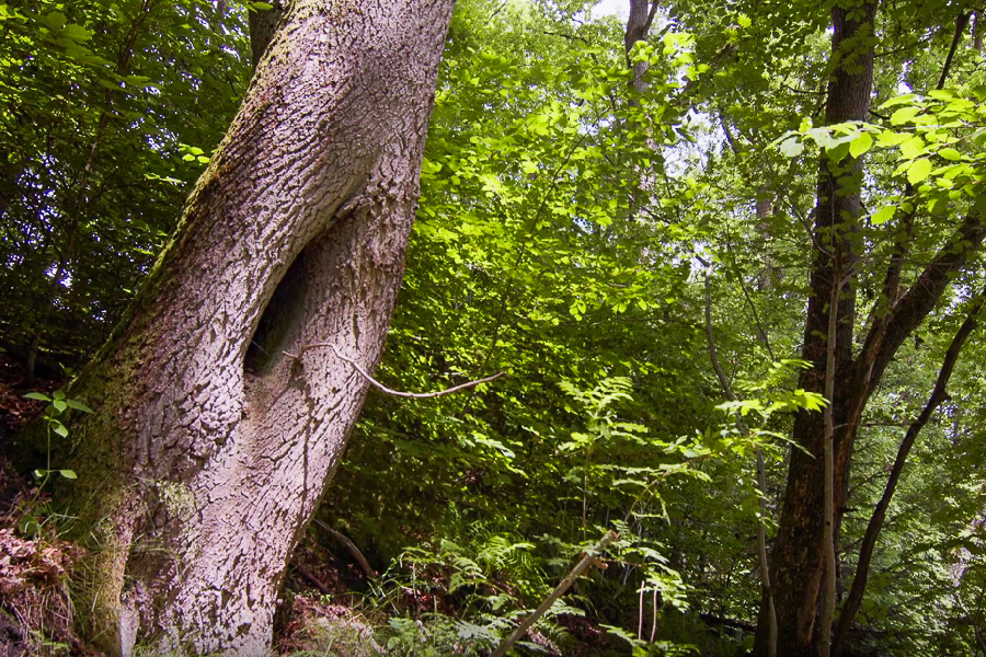 At the heart of Kaleburn lies a peaty lowland bog, formed due to a perfect storm of specific site conditions: the location within a depression on the high Ardennes plateau, poorly draining soils that promote rainwater accumulation, high local rainfall and low average temperatures. This environment allowed Downy Birches (Betula pubescens) to colonise the area, notably growing with Sphagnum moss sleeves surrounding their trunks — the very mosses responsible for peat formation. Comprehensive surveys have identified a total of 61 moss species, including nineteen different Sphagnum species. This peaty Sphagnum birch wood is an extremely rare habitat in Luxembourg, enjoying protection at both national and European levels, underscoring its status as a priority bryological hot spot.