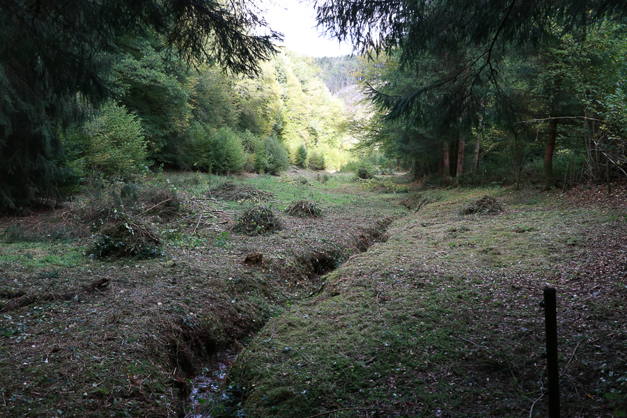 Ecological management focuses on restoring these delicate habitats. A significant portion of conifers growing in wet conditions along a tributary of the Bëttlerbaach, heading toward Harlange, was previously removed during an Interreg project. Currently, the lean meadow is being restored for very extensive grazing using horses. The wet scrublands require regular, spaced maintenance; in 2022, teams from the Forum pour l’emploi undertook manual clearing to enable mowing with a Softrak machine. This targeted management prevents scrub encroachment and maintains open areas.
