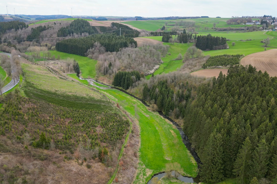 The Follmillen valley offers a beautiful opportunity to witness landscape restoration in action. The best time for birdwatching and enjoying the diverse flora is late spring (April to June), when the Marsh Marigold (Caltha palustris) is in bloom and migratory birds are active. Visitors should be aware that the site features diverse topography, ranging from valley floors to forest slopes. Since the area includes extensive managed hay meadows and wetlands, sturdy, waterproof hiking boots are strongly recommended for navigating the terrain comfortably. As the ESCAPARDENNE Éislek Trail runs through the reserve, visitors can connect the area's natural beauty with its industrial heritage by viewing the preserved ruins of the historic Follmillen fulling mill.