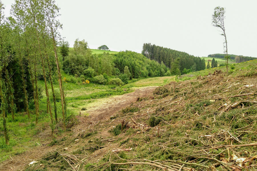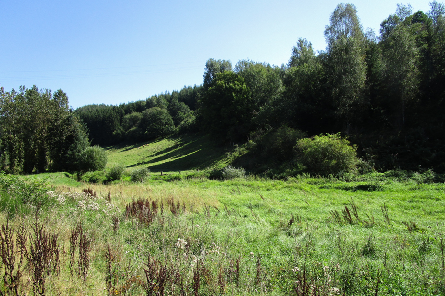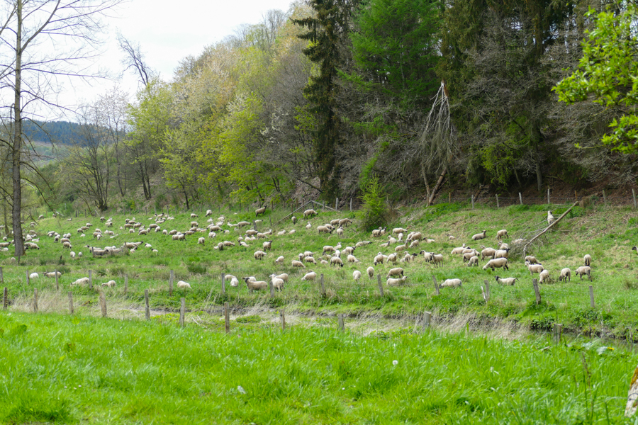 The Foundation’s reserve at Follmillen has expanded in recent years through strategic land purchases, allowing for tailored site management. Wet meadows are now maintained through sheep grazing, while the drier hay meadows are mown annually by a local organic farmer. In the valley floor, the development of an alluvial forest is actively encouraged between the two agricultural zones, spurred by recent plantings following the clear-cutting of spruce stands. The spruce trees that once dominated the slopes were largely felled due to extensive storm damage. In their place, the slopes of the "Boxerberg" have been replanted with various deciduous species. To further enhance structural diversity, typical hedgerows and wild fruit trees (genus Sorbus) have been introduced.