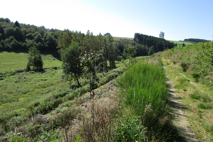 The site carries a rich historical legacy: the ruins of the old Asselborn Fulling Mill (Follmillen, dating back to 1688) lie directly along the ESCAPARDENNE Éislek Trail, which traverses the reserve. A fulling mill was a water-powered structure used to beat, soften, and degrease wool fabrics and leather - a common feature in the Ardennes region known for its heather moorlands and sheep pastures. Thanks to a key acquisition made in 2019, the ruins of the mill and its former supply channel are now permanently preserved and being valorised.