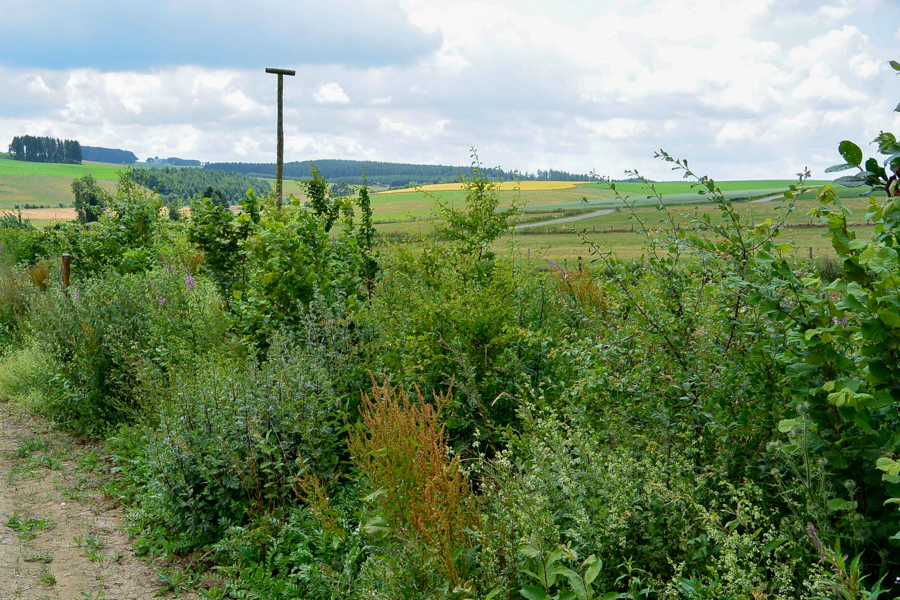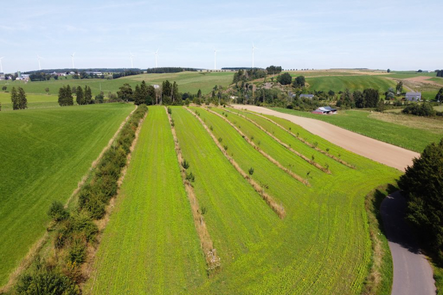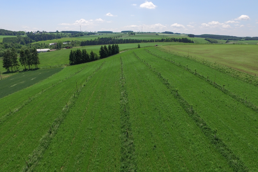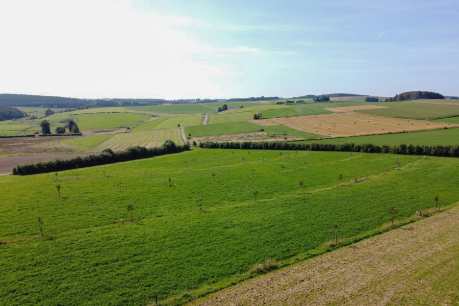 The revitalisation of this agricultural landscape has been a successful cooperative effort since November 2011. Several partners have played a vital role: for seven years, the Forum pour l'Emploi cultivated several hectares of vegetables for its Am Gaertchen project. Furthermore, a small herd of Galloway cows, currently managed by an organic farmer from Hupperdange, overwinters on a dedicated plot featuring a cattle shelter built in 2013 by the LIFE Éislek project. The majority of the land is now managed by the "Naturhaff" organic farm in Derenbach, which employs no-till farming techniques to maximise soil health.