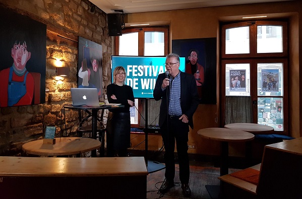Elvira Mattheis from COOPERATIONS ASBL and Pierre Koppes, Alderman of Wiltz, present the Festival de Wiltz programme;